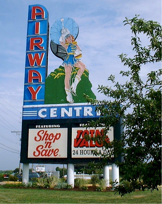 Below- St. Louis's former Airway Drive In on St. Charles Rock Road was redeveloped as a shopping complex. Thankfully they still retained their fabulous retro sign!