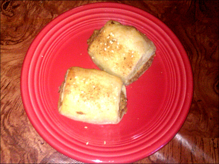 9) Place sausage rolls carefully on cookie sheets lined with parchment paper