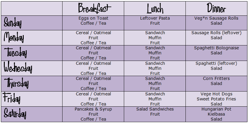 Weekly Menu Plan Oct 21, 2012- Oct 27, 2012